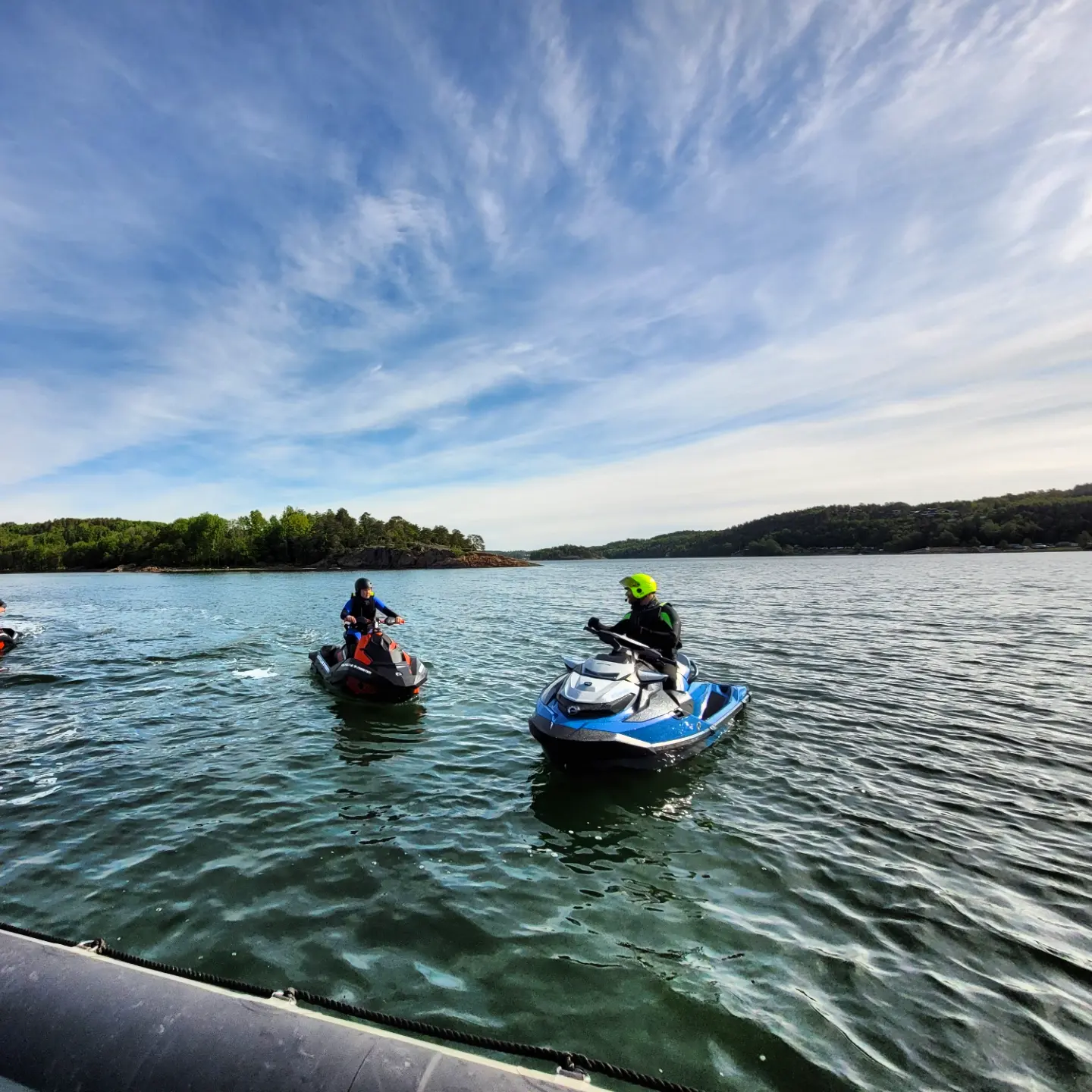 For den praktiske delen på vannscooter må du stille med egen vannscooter. Den kan deles med opptil 3 deltakere per kurs. Vi stiller krav på at det brukes tørr- eller våtdrakt med egnet fottøy under gjennomføringen. I tillegg har man på seg egnet polstret flytevest og hjelm, som vi har tilgjengelig hvis ønsket. På vannscooter blir man våt uansett vær- og vindforhold, så et skift må du regne med.